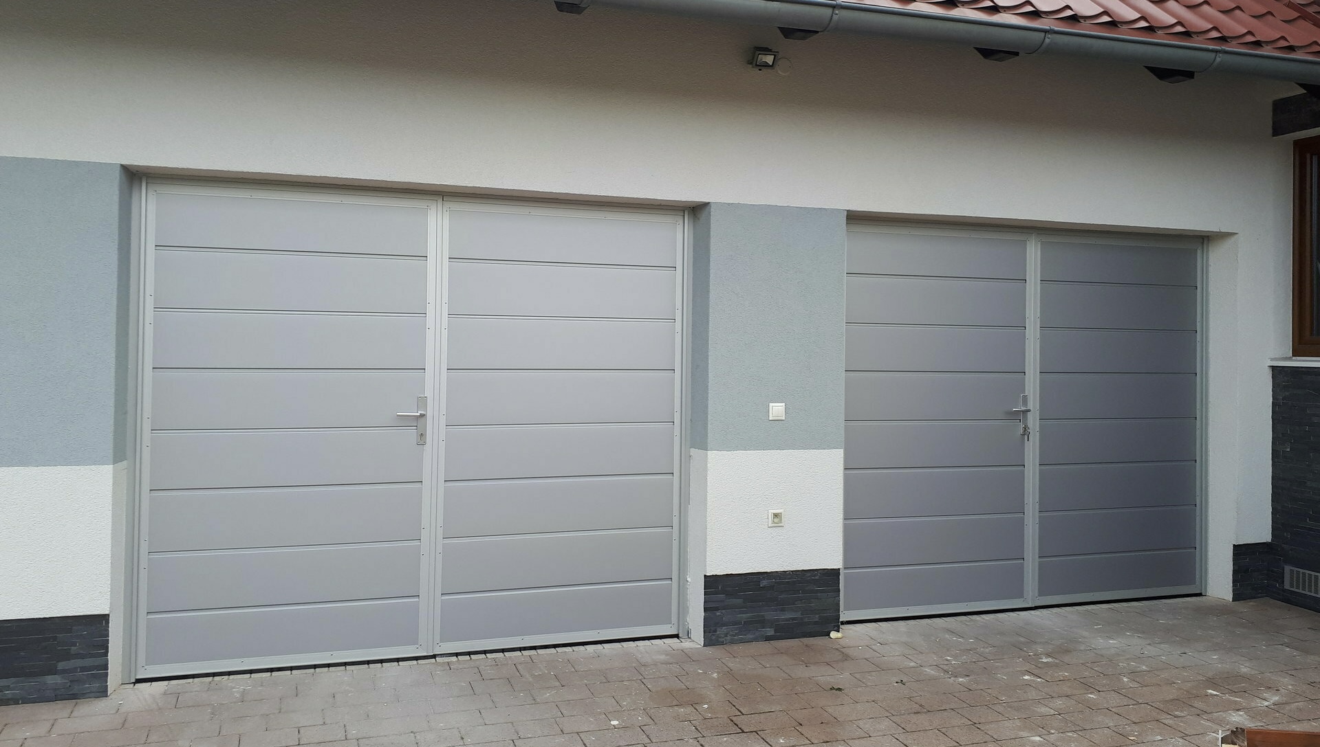 Možnosť zabudovať do krídla doplňujúce garážové dvere, čo uľahčí častý vstup do garáže, ak nemá iné vchodové dvere.
