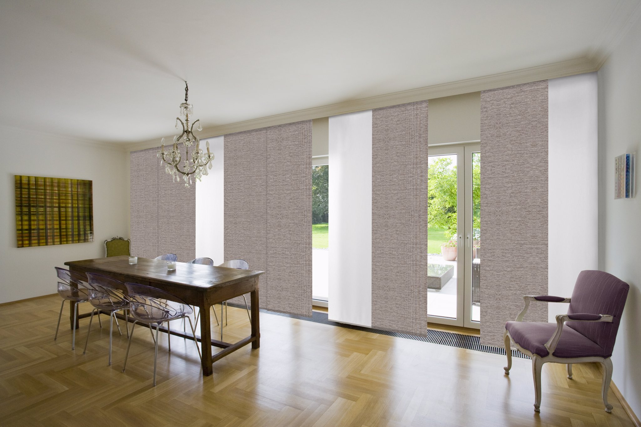Vertikálne látkové žalúzie premenia váš interiér na útulné miesto chránené pred nadmerným svetlom aj pred nežiaducimi pohľadmi. Široká škála prevedení lamiel vertikálnych žalúzií uspokojí vaše špecifické potreby. Ak potrebujete napríklad miestnosť zatemňovať, skvele poslúžia látky s plne zatemňujúcim účinkom. Nehorľavé materiály sú populárne v kancelárskych priestoroch, a materiály s obsahom skleneného vlákna zase uvítajú najmä alergici.
